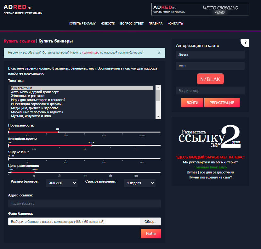 9 Срок размещения. На всех баннерных площадках системы срок размещения начинается от 1 недели и не может превышать 4 недель. Этот параметр в значительной мере влияет на конечную стоимость покупки, но никак не влияет на количество найденных площадок.